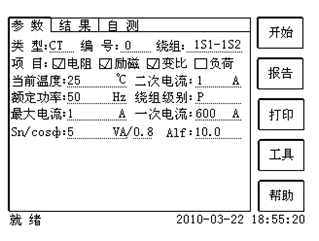 | 匝數比 | 被測試的二次繞組與一次繞組的實際匝比 | √ | √ | √ | √ | √ | √ | √ | √ | |