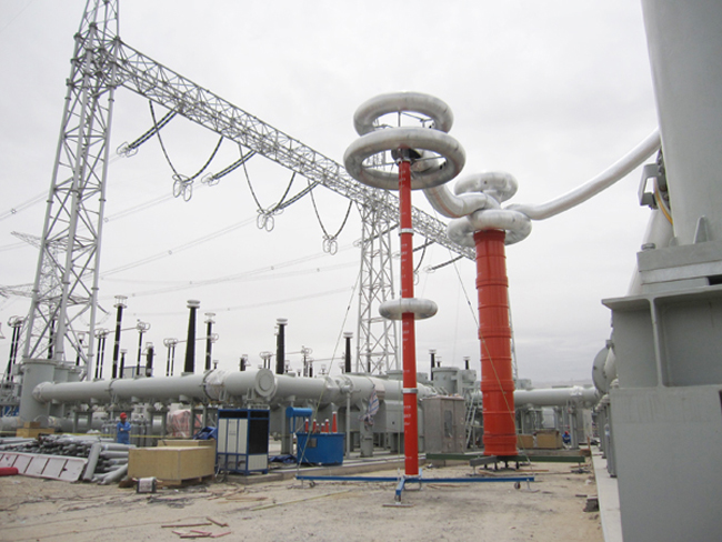 其中本次培訓(xùn)的重點是YTC850--5200kVA-260kV變頻串聯(lián)諧振耐壓試驗裝置,該裝置主要針對220kV高壓套管、隔離開關(guān)的交流耐壓試驗, 220kV主變的交流耐壓試驗設(shè)計制造。具有較寬的適用范圍,是地、市、縣級高壓試驗部門及電力安裝、修試工程單位理想的耐壓設(shè)備。該裝置主要由變頻電源、勵磁變壓器、電抗器、電容分壓器組成,裝置具有過壓、過流、零位啟動、系統(tǒng)失諧(閃絡(luò))等保護功能,過壓過流保護值可以根據(jù)用戶需要整定,試品閃絡(luò)時閃絡(luò)保護動作并能記下閃絡(luò)電壓值,以供試驗分析。整個裝置單件重量很輕,便于現(xiàn)場使用。裝置具有三種工作模式,方便用戶根據(jù)現(xiàn)場情況靈活選擇,提高試驗速度。工作模式為:全自動模式、手動模式、自動調(diào)諧手動升壓模式.