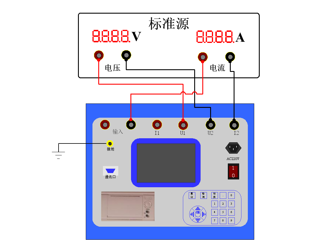 2)接線(xiàn)圖:測(cè)試儀與標(biāo)準(zhǔn)源的接線(xiàn)圖如下: