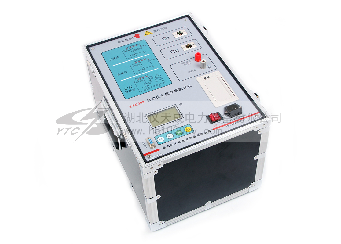 YTC309全自動抗干擾介損測試儀突破了傳統的電橋測量方式,采用變頻電源技術,利用單片機、和現代化電子技術進行自動頻率變換、模/數轉換和數據運算;達到抗干擾能力強、測試速度快、精度高、全自動數字化、操作簡便;電源采用大功率開關電源,輸出45Hz和55Hz純正弦波,自動加壓,可提供最高10千伏的電壓;自動濾除50Hz干擾,適用于變電站等電磁干擾大的現場測試。廣泛適用于電力行業中變壓器、互感器、套管、電容器、避雷器等設備的介損測量。儀天成電力設備有限公司就YTC309全自動抗干擾介損測試儀的主要性能做以下的講解。