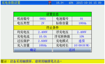 充電時(shí)長(zhǎng):最小1分鐘;最大99小時(shí)59分。設(shè)置完成并確認(rèn)接線正確后,按確定進(jìn)入開(kāi)始充電。