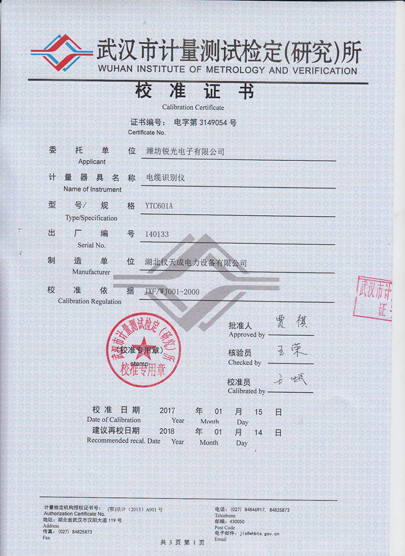 | 具有一次標定多條電纜的功能,每條電纜標定好后不能改變測試頻率和放大倍數(shù),否則要重新標定 | |