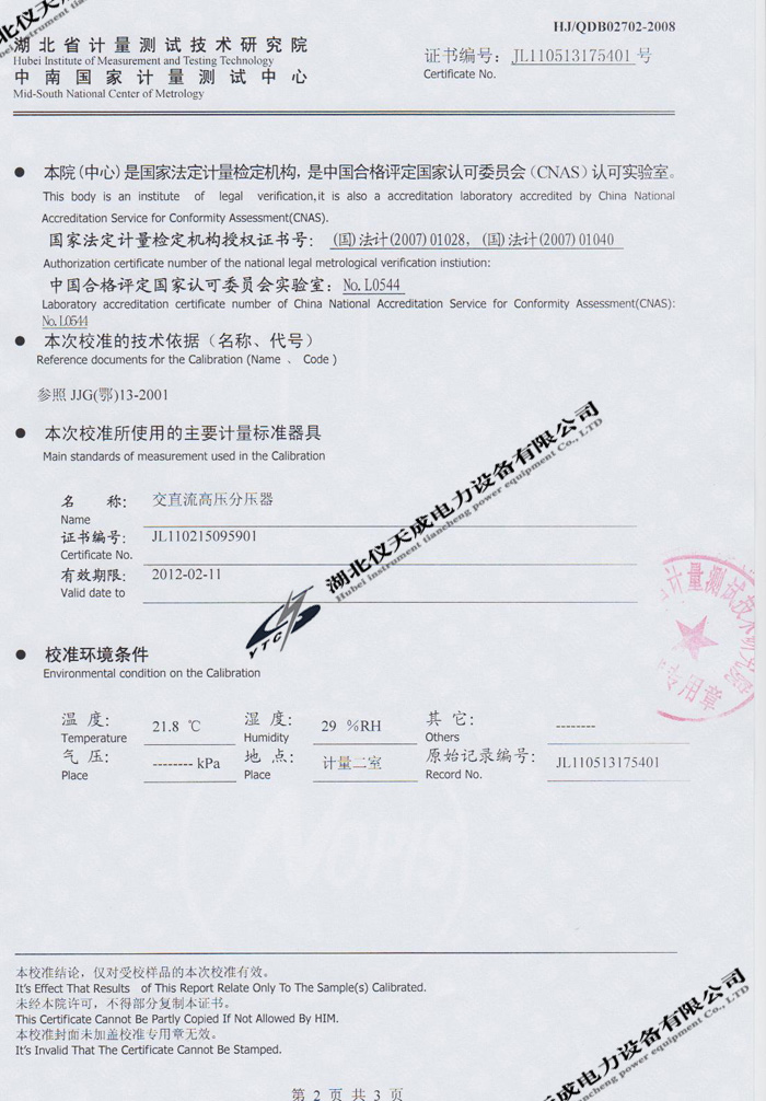 轉(zhuǎn)載:"YTCZG-60kV/2mA直流高壓發(fā)生器的資質(zhì)證書" 請(qǐng)注明來源于儀天成電力。 更多技術(shù)問題請(qǐng)致電儀天成電力客戶服務(wù):027-87876585,技術(shù)部專線:027-87876585,在線客服:719388481
